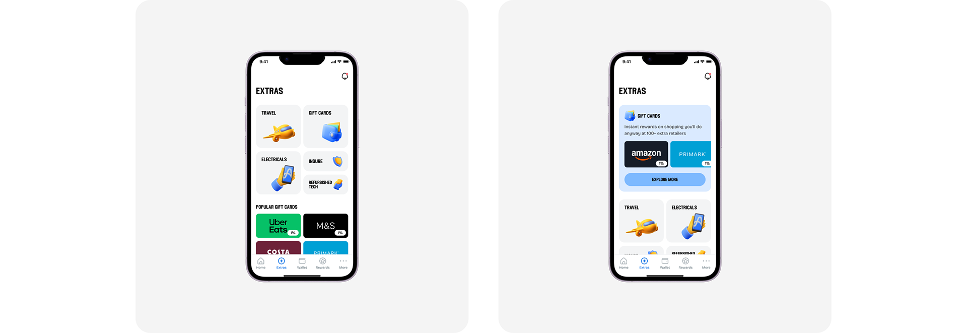A couple of iterations we tried was the hierarchy for the placement of gift cards. We knew that adoption might be low for gift cards if we left them in the extra's page like the rest of the propositions. For that reason we considered having A/B test with them in a stand alone component.